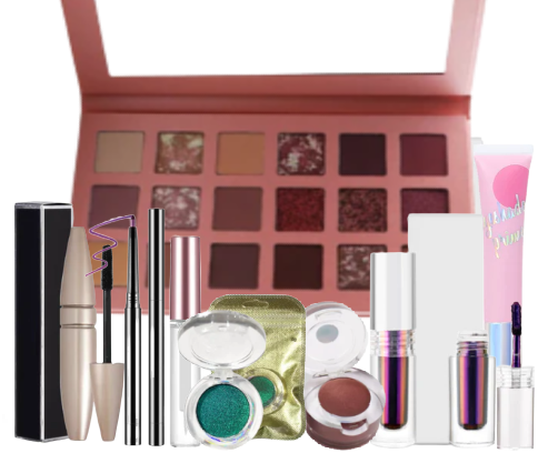 This sample package includes: Eyeshadow Palette, Cream Eyeshadow, Mascara, Eyeliner, Chrome Shadow, Eyelash Growth Serum.